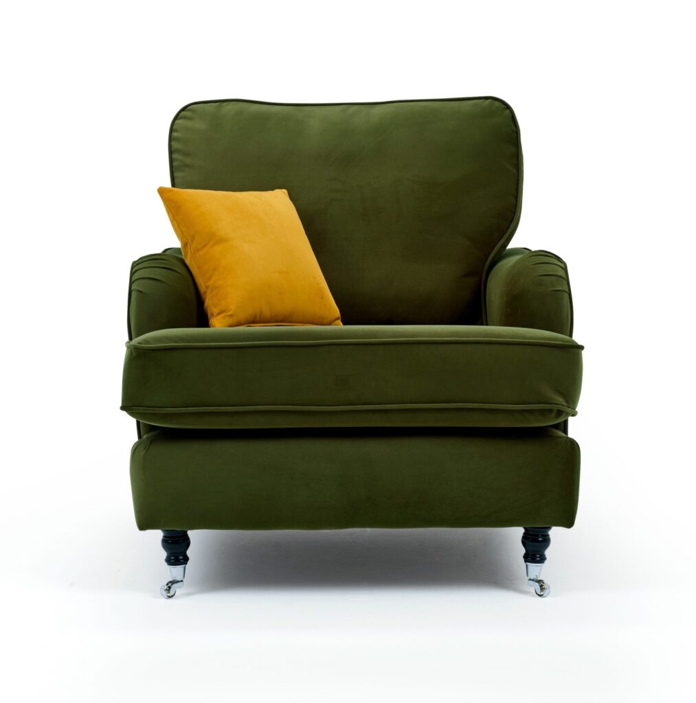 The Abigail range with its overstuffed cushions in combination with its pintuked arms gives the Abigail a sumptuous luxurious feel. Add to that the ebonized black wooden feet with nickel effect castors. Gives you the ultimate in comfort and luxury with a supreme style that won’t break the bank.